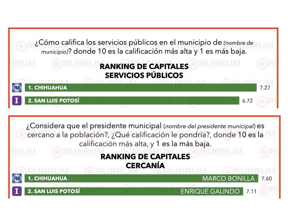 El Presidente Municipal de San Luis Potosí, Enrique Galindo Ceballos, se posicionó como uno de los mejor evaluados del país en la encuesta de abril de Rubrum, al alcanzar el segundo lugar nacional en trabajo y desempeño, calidad de los servicios públicos y cercanía con la población. Además, la capital potosina se ubicó en cuarto lugar en percepción de seguridad.