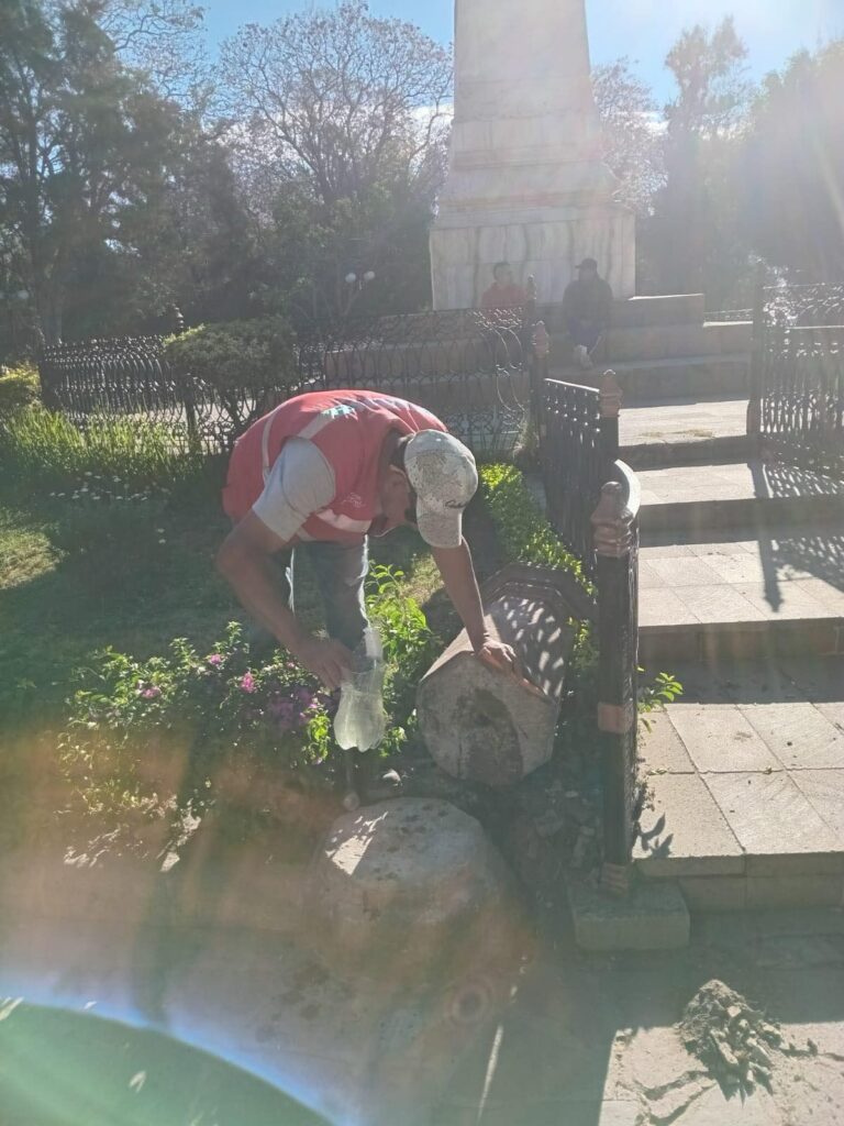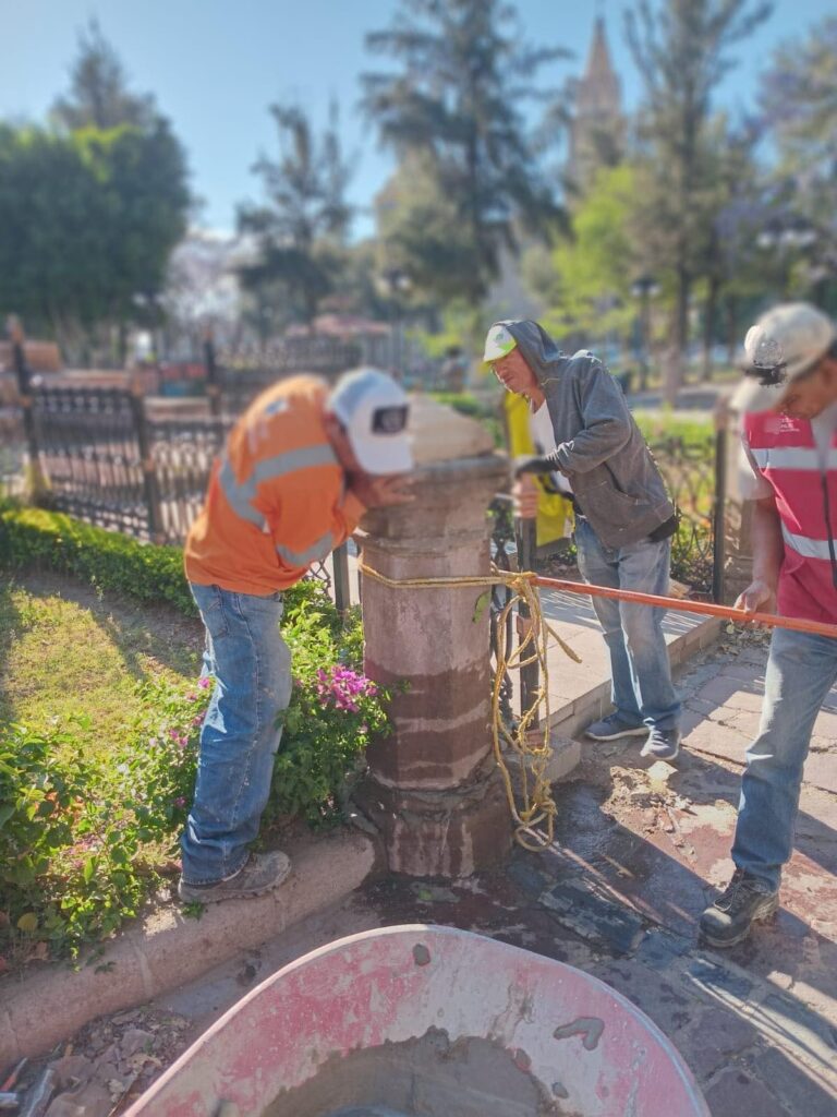 Como parte de las acciones permanentes para proteger la riqueza arquitectónica de la Capital, considerada Patrimonio Mundial, personal del Ayuntamiento restauró y reinstaló una columna ornamental en la Alameda Juan Sarabia, que fue encontrada rota y derribada.