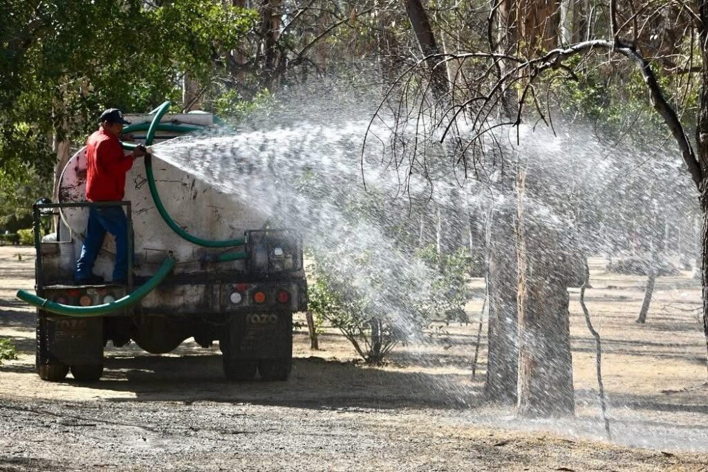 La falta de lluvia y el aumento de la temperatura hace necesario el riego con agua tratada, para que el agua potable se destine únicamente al uso doméstico