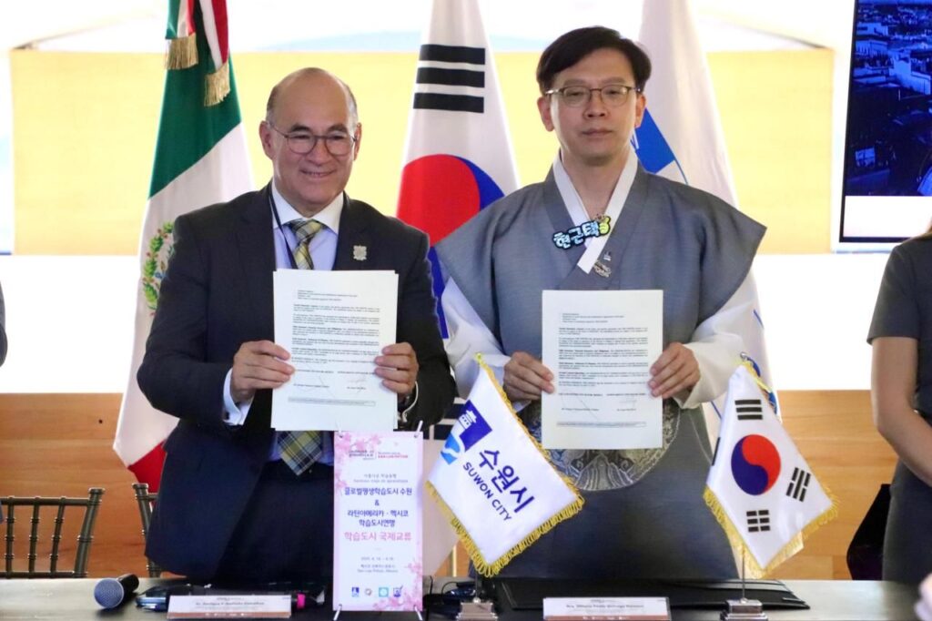 En Sesión Plenaria realizada en el Centro de las Artes, la Red de Ciudades del Aprendizaje que preside el Alcalde de San Luis Potosí, Enrique Galindo Ceballos; con la participación de Raúl Valdés Cotera, Coordinador de la Red Mundial de la Unesco, autoridades municipales de México y la República de Corea establecieron acuerdos de cooperación en temas estratégicos como desarrollo sustentable, cultura, educación, seguridad y gestión del agua. Durante el encuentro se delineó también el Plan de Trabajo 2025 de la Red Mexicana.