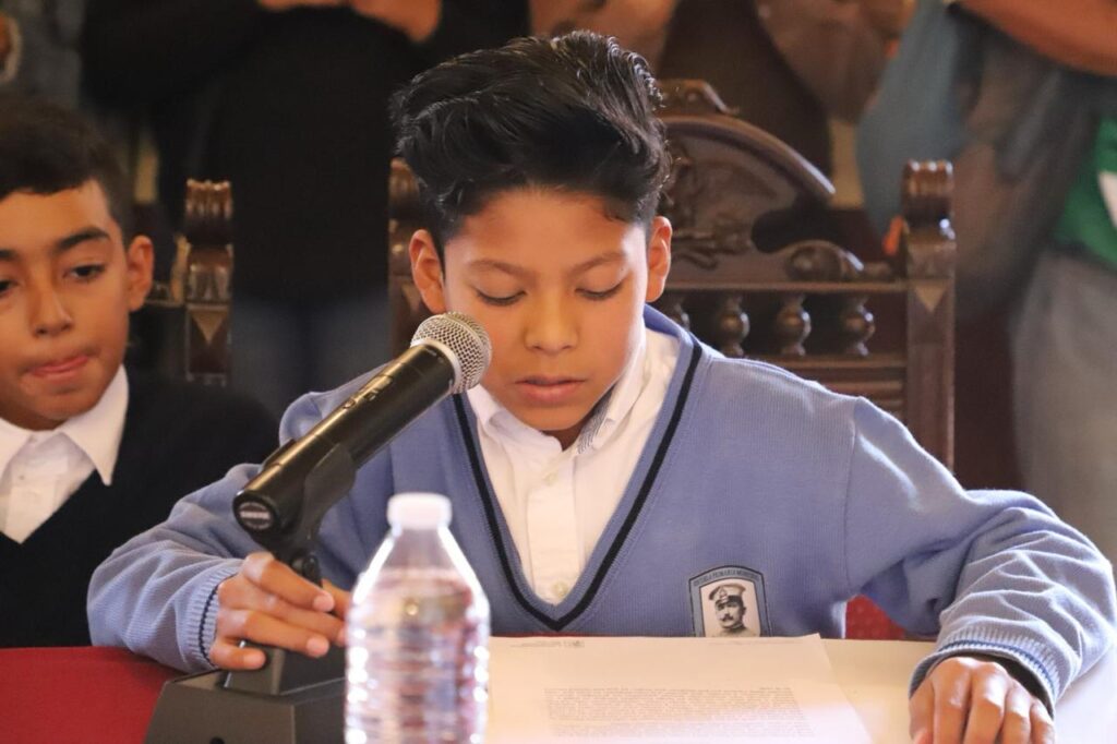 El Cabildo Infantil 2025 quedó integrado por: Ana Paula Álvarez Huerta, Presidenta Municipal, del Colegio Juan de Dios Peza «Sagrado Corazón»; mientras que como secretario general fue designado Néstor Abdiel Hernández Reyes, de la Escuela Antonio Díaz Soto y Gama.