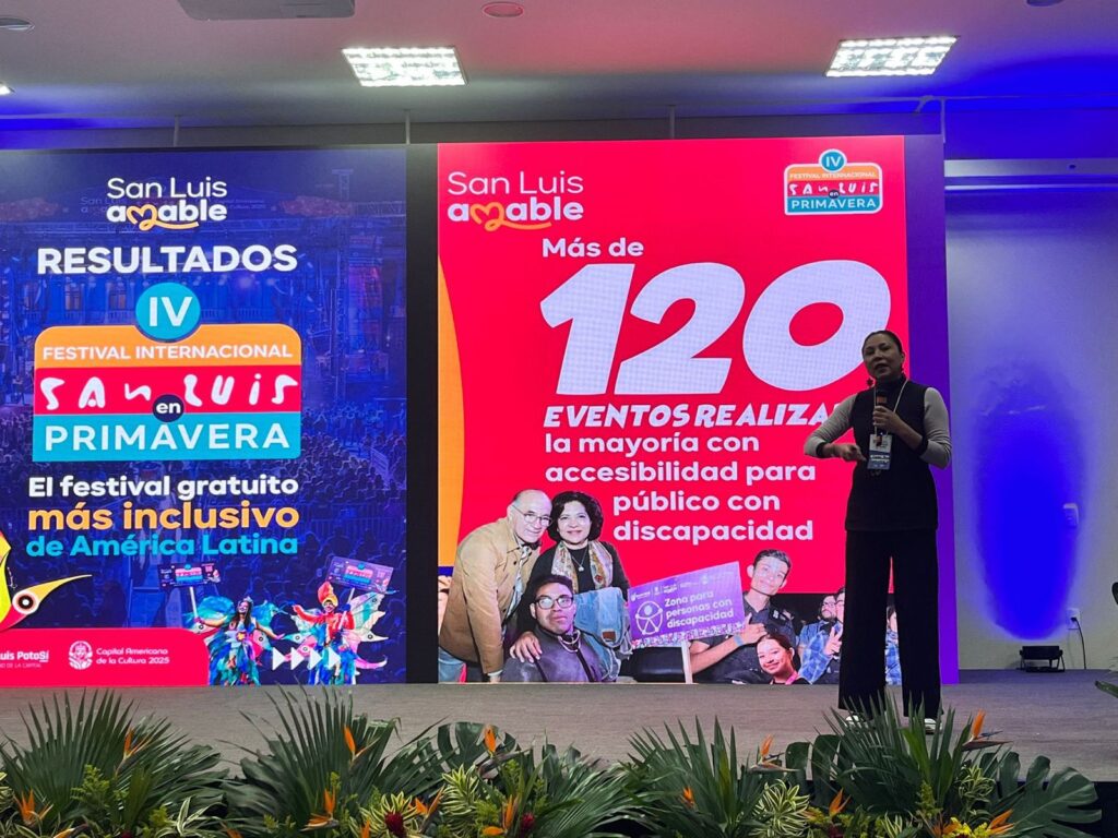 Durante su participación, Claudia Lorena Peralta Antiga, Directora de Turismo Municipal, expuso los casos de éxito implementados en San Luis Capital, especialmente las experiencias de conciertos incluyentes y accesibles realizados en el marco del festival, que han permitido la participación plena de personas con discapacidad.