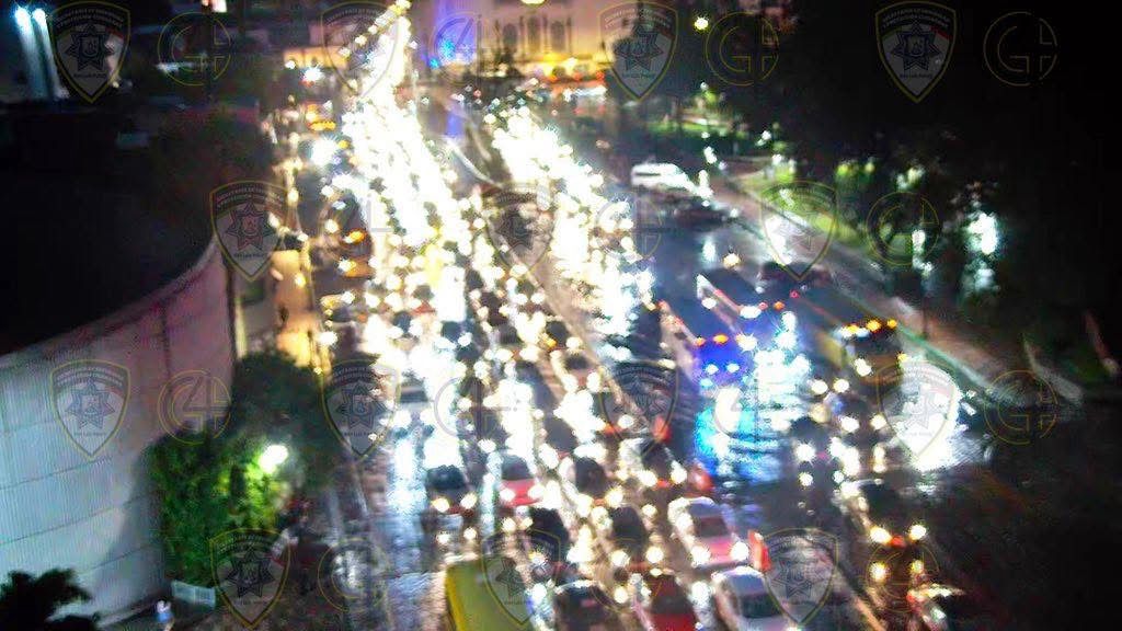 Al momento, oficiales de Policía Vial han brindado apoyo a cuatro automovilistas que quedaron varados en zonas inundadas en la glorieta Real Inn y en Río Santiago, principalmente.