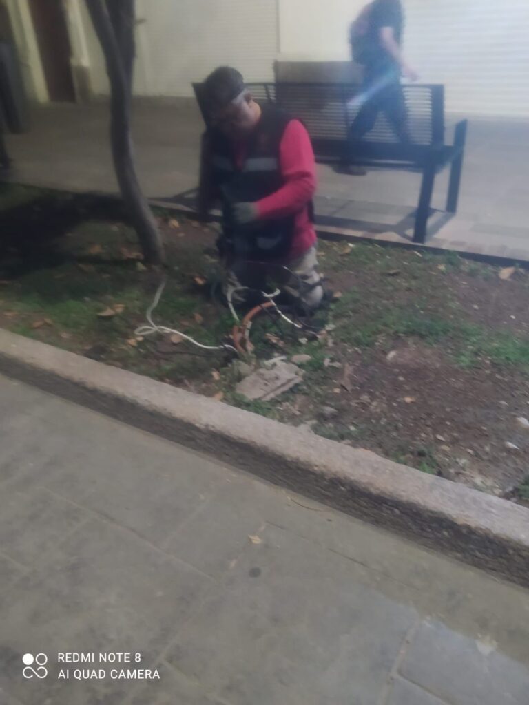 Durante el recorrido de supervisión, también se identificaron otras luminarias apagadas en áreas peatonales y vehiculares. Al revisar los registros, se detectó la ausencia de algunas líneas, las cuales fueron repuestas y reconectadas para asegurar la continuidad del servicio de alumbrado público en estas zonas.