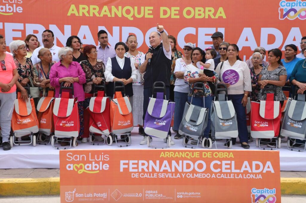 Acompañado por vecinos, directores, síndicos, regidores y personal del Gobierno de la Capital, el Presidente Municipal dio inicio a los trabajos para la rehabilitación integral de la calle Fernando Celada, en el tramo de Sevilla y Olmedo a La Lonja y que incluye la reposición de las redes de agua potable y drenaje, que se encuentran sumamente deterioradas por su antigüedad.