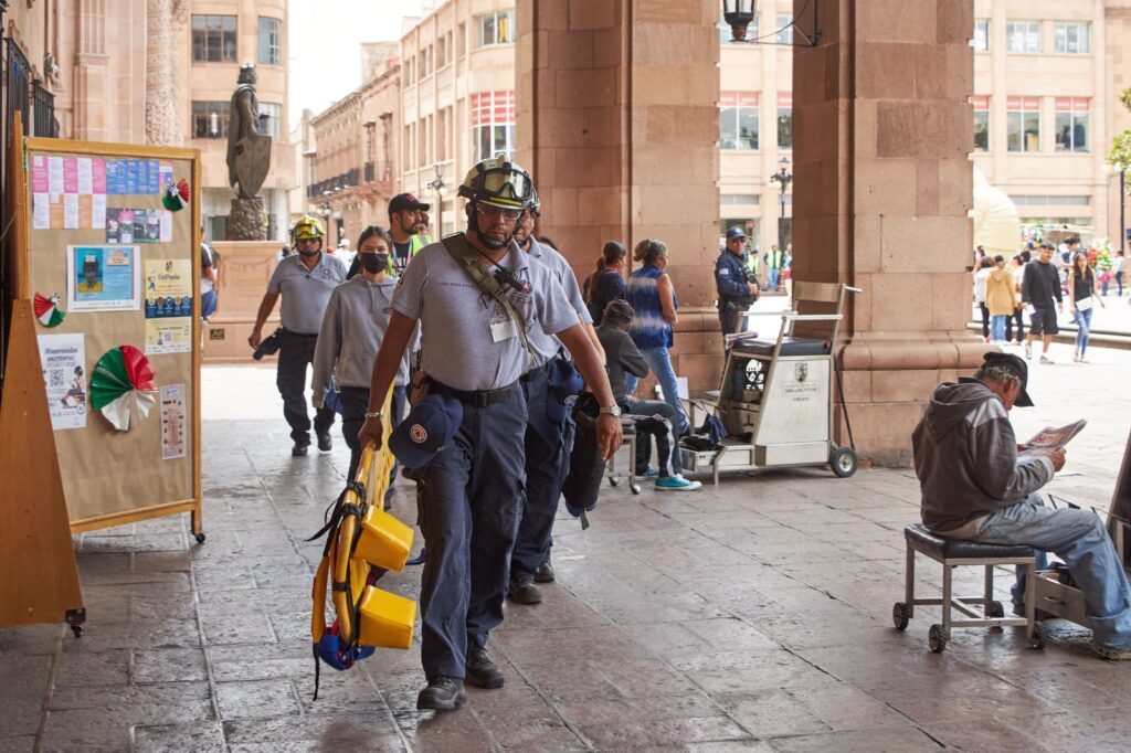 Alineados a los protocolos de la Coordinación Nacional de Protección Civil, este viernes 19 de septiembre a las 12:00 horas, la Secretaría de Seguridad y Protección Ciudadana, a través de la Dirección de Protección Civil, realizó el simulacro de desalojo en Palacio Municipal, contando con la participación de más de 84 personas.