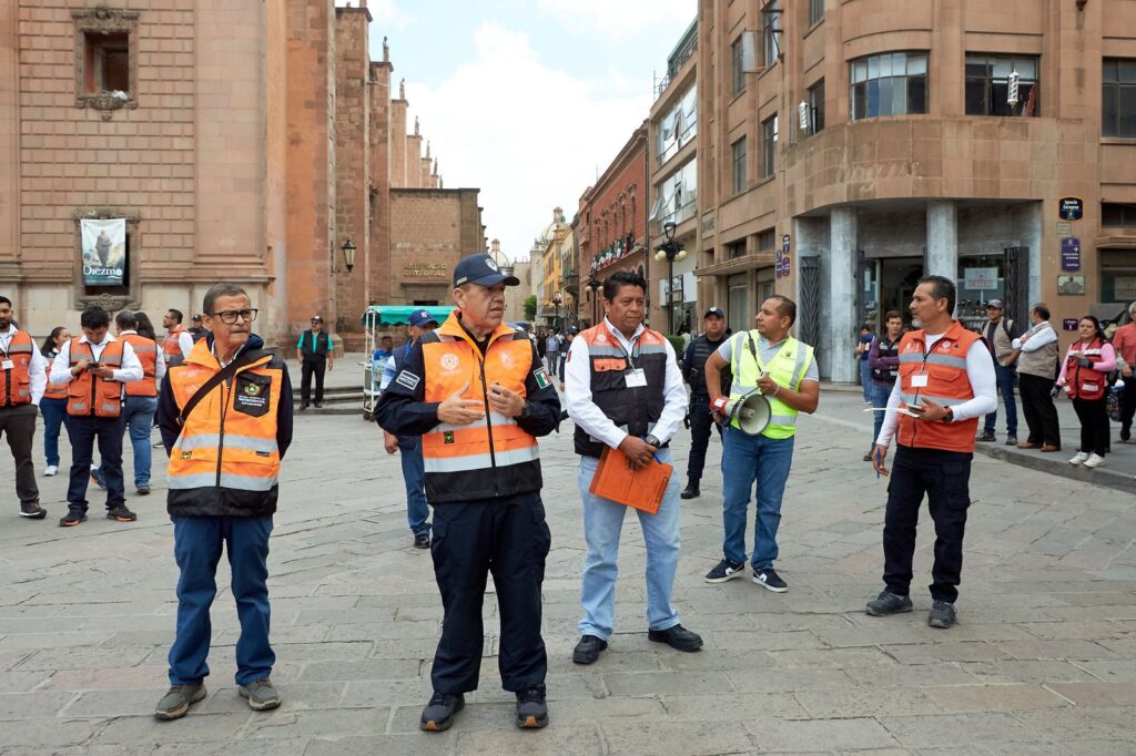 El simulacro fue encabezado por el Secretario de Seguridad y Protección Ciudadana, Comisario Juan Antonio Villa Gutiérrez, junto con el titular de Protección Civil Municipal, Adrián Cortázar Ruiz.