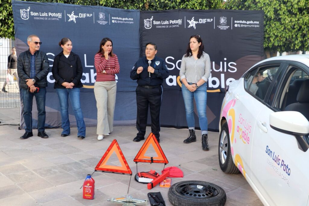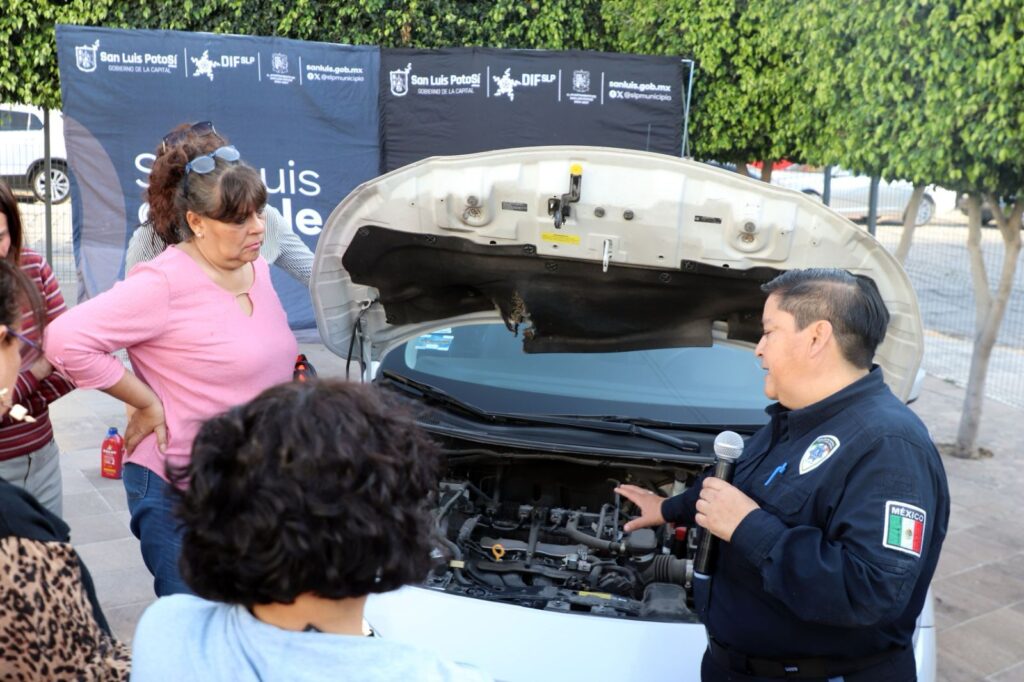 La capacitación estuvo a cargo de la Comandante Irma Morales Hernández, Directora de Prevención Social de la Violencia, Atención a Víctimas y Participación Ciudadana, quien de manera práctica y accesible enseñó a las participantes la importancia de revisar tres niveles esenciales en sus automóviles: aceite, agua o anticongelante, y líquido de frenos. Asimismo, explicó la función de las luces reglamentarias —al menos siete de ellas— para una conducción segura.